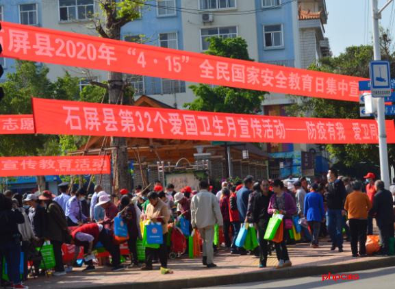 4月15日,石屏县工会广场举行主题为“防疫有我 爱卫同行”的第32个爱国卫生月宣传活动,县计生协积极组织志愿服务队参与其中。