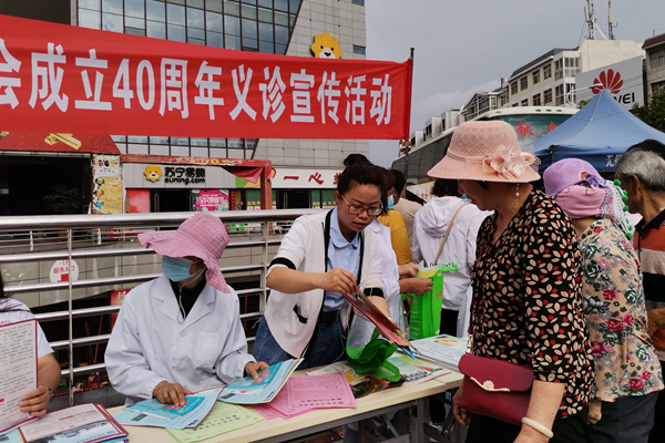 5月23日上午,弥勒市在佛城广场开展庆祝中国计生协成立40周年义诊宣传活动。