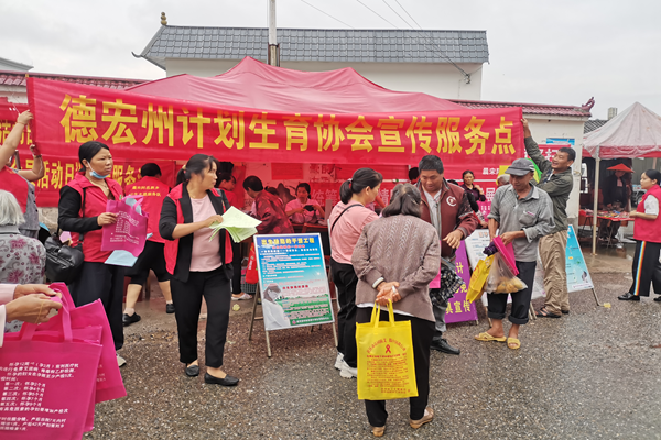 5月27日,德宏州卫健委、州计生协会,梁河县计生协会、县医院、县疾控中心、县妇幼保健计划生育服务中心在曩宋乡联合开展以“壮阔四十年 奋斗新时代”为主题的庆祝中国计生协成立40周年及“5.29”会员日系列宣传服务活动。