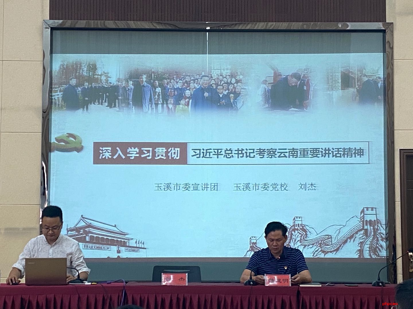 学习会上,玉溪市委宣讲团、市委党校刘杰老师围绕深刻认识习近平总书记考察云南重大而深远的里程碑意义;习近平总书记考察云南重要讲话精神实质和丰富内涵;贯彻落实习近平总书记考察云南重要讲话精神三大方面,从云南新的历史方位、主要奋斗目标、经济发展情况等方面出发,运用丰富的典型案例,深入剖析了云南发展当前存在的机遇与面临的挑战。同时,对玉溪的发展也提出了自己的看法,玉溪发展要落实高质量发展要求,推动产业发展迈向新台阶;要增加有效投资,打牢跨越式发展基础;要精准发力重点产业,推动高质量发展。最后,刘老师从把握“全面、整体、联系”、“两点论与重点论相统一”、“量变与质变相统一”三个观点来落实讲话精神。