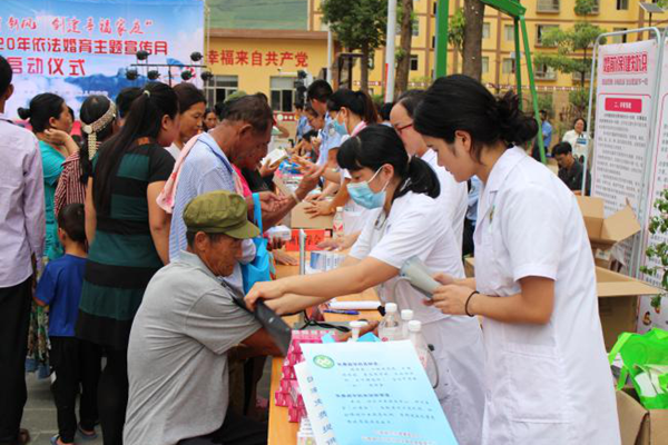 活动现场热闹非凡,人头攒动。州人民政府副州长、州公安局局长徐贤宣布活动启动,州中级人民法院、州检察院、州卫健委、州计生协会、州司法局、州民政局、州教育体育局、州人社局、州妇联、团州委等单位通过设立咨询台、发放宣传材料、设置宣传展板等方式广泛宣传文明、健康的婚育新风,普及《婚姻法》、《妇女权益保障法》、《义务教育法》、《人口与计划生育法》等相关的法律法规和健康知识,接受群众健康知识、婚育知识咨询服务,为群众免费发放计生药具,开展常见病、多发病义诊活动。