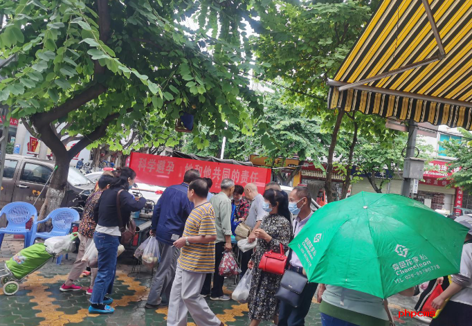 9月25日,开远市乐白道街道办事处组织计生协和卫生院在人流量大的农贸市场门口开展“科学避孕,他和她共同的责任”为主题的9.26世界避孕日宣传活动。
