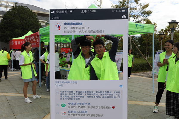 9月28日,昆明市计生协在云南水利水电职业学院举行以“科学避孕,她和他共同的责任”为主题的“9.26世界避孕日”宣传倡导活动。