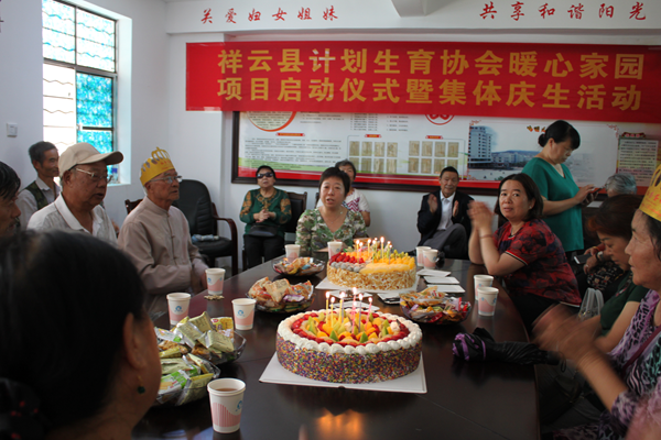 近日,祥云县计生协在祥城镇华严社区暖心家园内与30多名来自祥城镇华严社区、城西社区、城南社区等7个社区的失独老人聚在一起,为6-9月份过生日的老人举办了一个特殊而温馨的集体生日会。