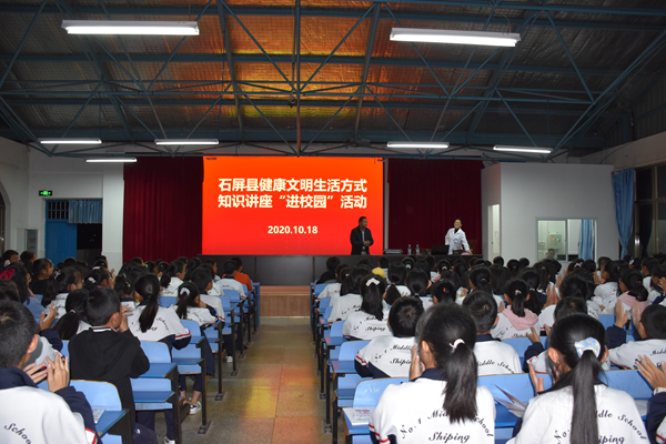 10月18日晚,石屏县卫健局、文明办、教体局、计生协会、健教所等五部门联合到县一中举办“健康文明生活知识方式”讲座,县一中初一年级全体同学和教师共320余人参加。