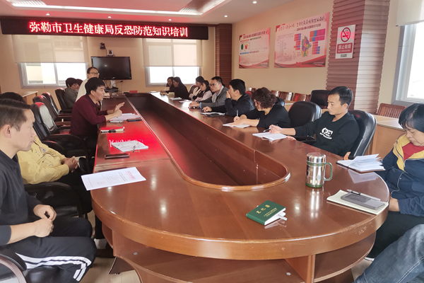 11月2日下午,弥勒市卫健局、市计生协联合开展反恐防范知识培训和反恐防暴应急演练。