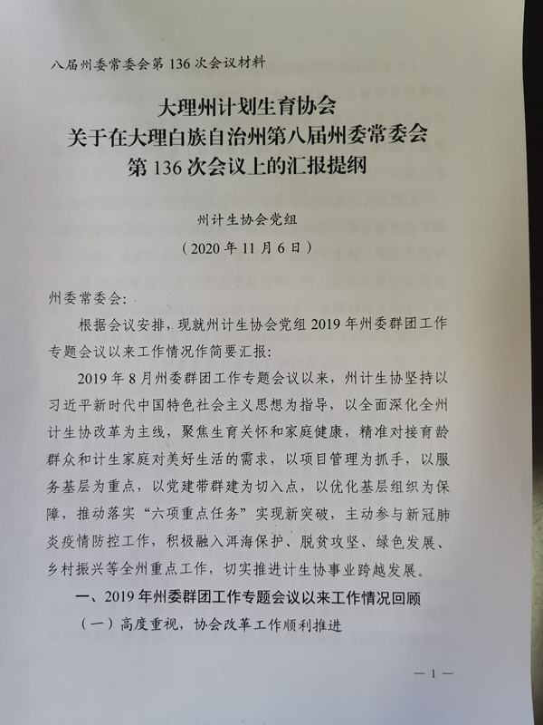 11月6日下午,大理州八届州委常委会第136次会议听取了大理州计生协会党组工作汇报。
