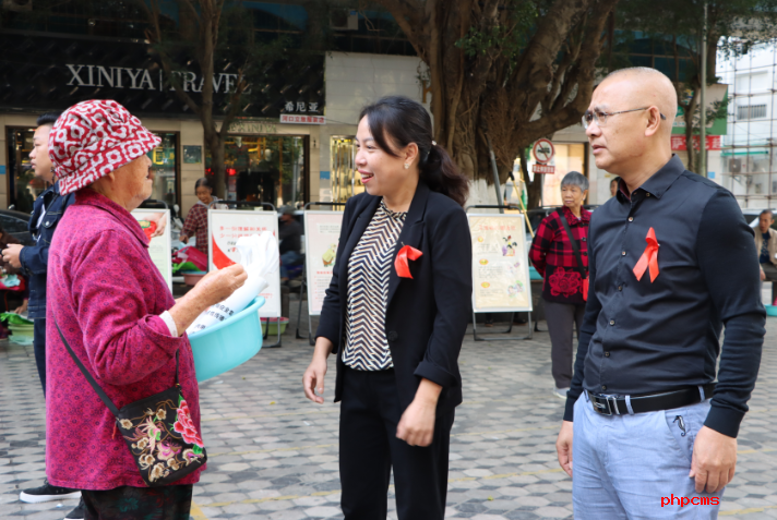 12月1日,河口县计生协等9个防治艾滋病成员单位在街心花园开展“携手防疫抗艾,共担健康责任”主题的世界艾滋病日宣传活动。县政府副县长龙艳到现场指导。