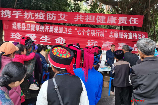 为营造全民参与艾滋病防治工作的社会氛围,12月1日,高举“携手防疫抗艾,共担健康责任”宣传主题,绿春县计生协会与14个县防艾委成员单位及县直各医疗卫生单位联合开展宣传活动。