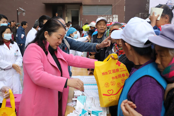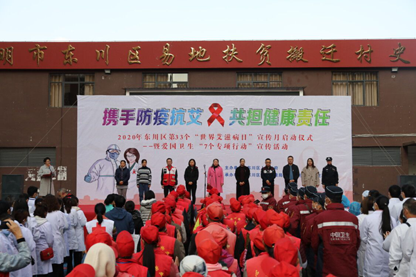 12月1日,昆明市东川区卫健局、计生协在铜都街道对门山移民新区广场,启动第33个“世界艾滋病日”宣传月活动暨爱国卫生“七个专项行动”宣传活动。