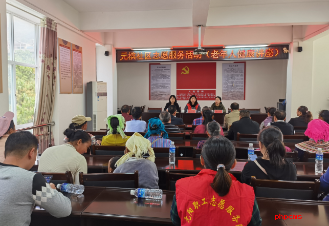 2020年12月15日上午,元阳县计生协组织志愿者服务队到南沙镇元槟社区开展“引领全民健康生活理念、提高家庭幸福指数”为主题的老年人健康生活知识宣传讲座,参加人员有社区干部、居民、志愿者共67名。