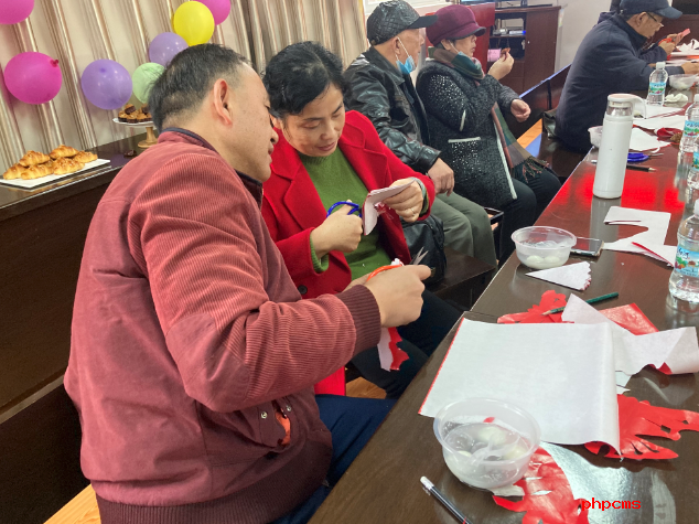 活动中邀请到窗花剪纸专家方老师带领大家“剪窗花,迎新春”。平平无奇的蜡光纸在方老师的“调教指导”下,叔叔阿姨们手中的普通蜡光纸,不一会儿摇身一变,形成栩栩如生的小蜻蜓、小蝴蝶、小螃蟹和争奇斗艳的小菊花、小石榴花等窗花作品,创意十足的窗花,“剪”出了浓浓的年味。