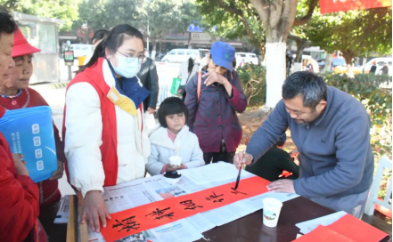 活动现场,街道文化中心的李云辉老师泼墨挥毫,用喜庆的红纸给街道群众送去节日的祝福与真情的关怀,笔墨挥洒间,一张张笔力雄健的“福”字,一幅幅气韵生动的对联呈现在大家面前。