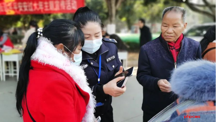 派出所开展反诈骗宣传活动,民警通过向群众发放反电信诈骗宣传单,推广“金钟罩”小程序、现场讲解等形式向群众讲述电信诈骗的种类、手段、防范常识,提高群众防范应对电信诈骗的意识和能力。民警在宣传中特别告知老年人,如遇到可疑情况,多与家人沟通商议或者拨打报警电话询问。