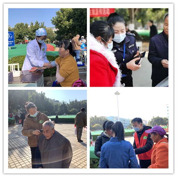 医务志愿者为群众提供疾病预防知识宣传、量血压等志愿服务活动,计生协志愿者针对有“三高”病史的群众讲解疫情防控、慢性病防治、全民健康生活方式活动等知识。