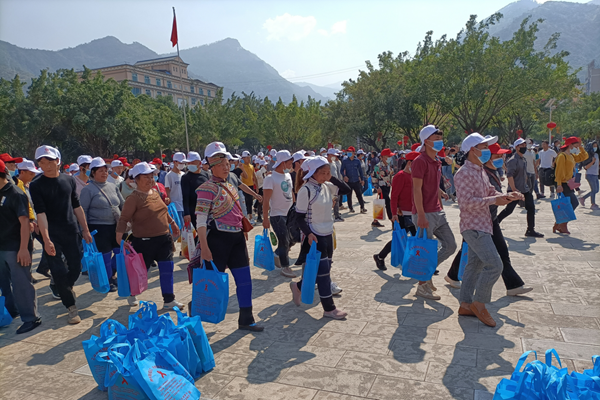 2月22日,元阳县举行2021年“春风行动、百日行动”组织农民工赴省外返岗就业欢送活动。仪式上,为每个外出务工人员发放口罩、矿泉水等物资和防艾、禁毒、新冠肺炎科普、农民工手册等宣传品,为他们提供出行防护安全保障。