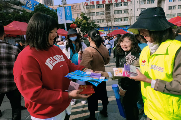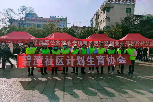 2月26日,昆明市呈贡区洛龙街道碧潭社区计生协在区妇联、区人社局开展“春风行动”女性就业专场招聘会上,现场开展生殖健康和优生优育知识宣传服务活动。