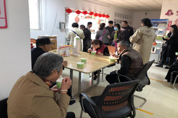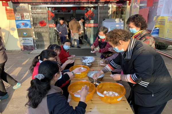 活动中,社区工作人员与大家一起用包汤圆的方式来庆祝这个传统节日。搓、捏、按、团,一块块白白的糯米面在他们的手中时而团成一个球,时而压成一个饼包上馅,忙的不亦乐乎,一个个诱人的汤圆新鲜出炉。汤圆包好后,社区工作人员把汤圆下锅煮熟,亲手送到居民手上,大家吃着热气腾腾的汤圆,脸上露出幸福的笑容。