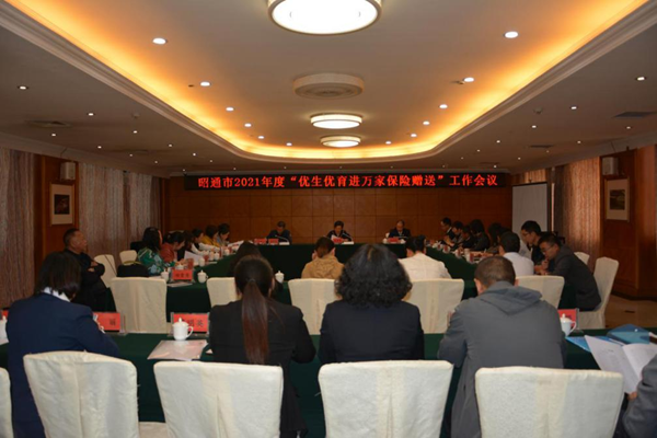 2021年3月30日,昭通市计划生育协会联合中国太平洋人寿保险股份有限公司昭通中心支公司召开全市2021年优生优育进万家保险赠送工作会议。会议由昭通市计划生育协会副会长、秘书长陈明乾主持。昭通市计划生育协会常务副会长、民盟昭通市委主委雷贤慧和中国太平洋人寿保险股份有限公司昭通中心支公司党委书记、总经理毛成武出席会议,并分别作了讲话。
