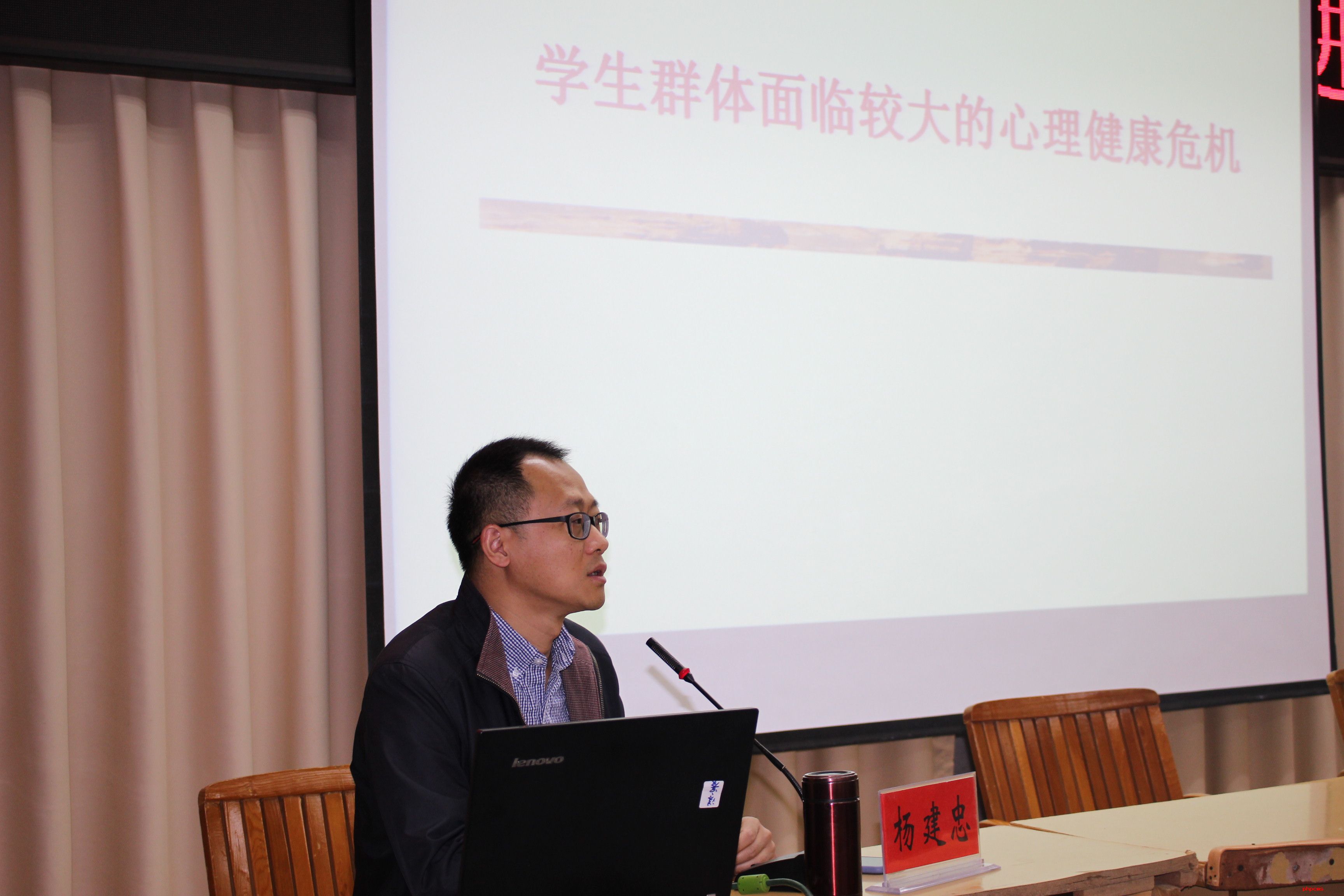 培训中,邀请到昆明医科大学第二附属医院精神科主任、博士研究生导师杨建中前来授课。杨主任以《校园常见精神症状/障碍识别及危机》为主题,就学生心理健康的影响、精神疾病的症状学、如何判断精神症状、抑郁症与焦虑障碍、危机状况时紧急启动医-校联动和转诊等内容,结合自身工作中遇到的实际病例,深入浅出地为教师们上了一堂精彩的心理健康教育课。听课后教师们纷纷表示,杨主任的讲解,对校园常见精神症状有了较为系统的了解,对下一步如何更好地做好学生的心理健康教育管理工作有了更清晰的认识,希望上级部门多组织这样的培训。