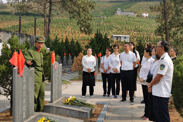 为在全州卫健系统营造缅怀英烈、崇尚英雄的浓厚氛围,将党史学习教育走深、走实。4月16日上午,怒江州卫生健康委、计生协和卫生监督所党员干部一行14人到泸水市小沙坝烈士陵园开展党史学习教育中缅怀革命先烈祭英烈活动。