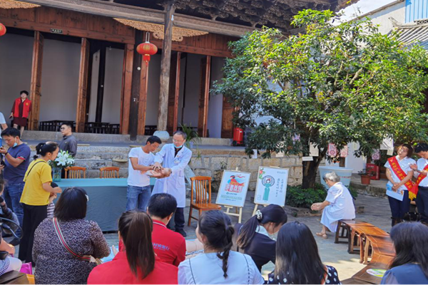 在南屯社区,邀请到红河妇产医院、蒙自沪农商村镇银行、蒙自儿童摄影韩公馆等多位爱心人士,与计生协会员和志愿者组成服务队,发挥自己所能,为居民群众开展《心肺复苏》《海姆立克急救法》急救技能培训、“为爱分担 痛感挑战”——分娩镇痛男士体验、慢性病义诊、反电信诈骗反假币知识普及座谈、孕妈妈全家福相片拍摄等系列免费服务,增强群众的获得感、幸福感和安全感。