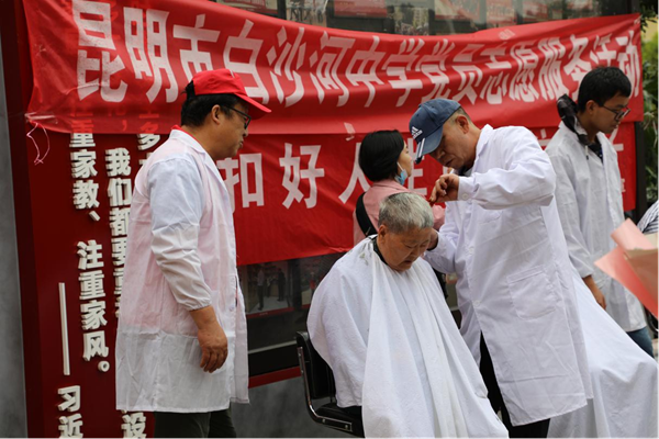 社区志愿者为群众免费理发