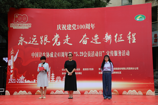 5月25日,昆明市计生协联合盘龙区计生协,在青云街道青裕社区举办以庆祝建党100周年“永远跟党走·奋进新征程——中国计生协成立41周年暨“5.29会员活动日”为主题的宣传服务活动。