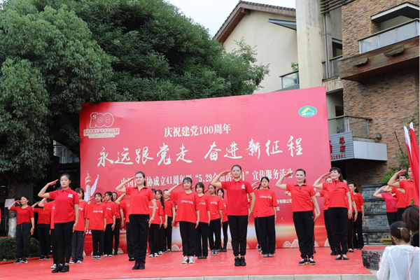 活动在百人共跳一支舞《五星红旗》《没有共产党就没有新中国》的优美舞蹈中拉开序幕。市、区计生协参加活动的领导致辞,现场慰问青云街道20户困难计生特殊家庭,为老党员们颁发“光荣在党50年”荣誉证书,来自社区幼儿园的小朋友们为老党员送上鲜花。随后,社区旗袍队、太极队、陀螺队等10余支队伍及两所幼儿园的小朋友们表演了《我和我的祖国》、《我爱你中国》、《唱支山歌给党听》等节目。社区志愿者还免费为群众理发,中医专家为群众义诊、推拿和针灸。活动现场发放健康知识宣传手册2000余册。