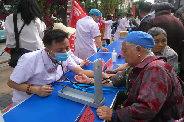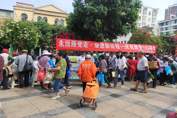 5月26日,红河州弥勒市计生协联合中国人寿保险公司弥勒市支公司、弥阳街道计生协、市中医医院、市妇幼保健院、市健康教育所、弥阳卫生院、弥阳社区卫生服务中心、城东社区卫生服务中心在佛城商都开展以“永远跟党走·奋进新征程——庆祝建党100周年”为主题的“5.29会员活动日”宣传服务活动。