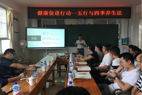 5月21日,在芒市镇卫生院的会议室内,挤满了来自法帕敬老院、勐焕街道计生协、社区卫生服务中和风平、遮放等5家卫生院,主要从事老年人卫生健康服务的基层医务工作者和计生协会会员、志愿者等共计49人。他们正在聆听上海市青浦区对口支援芒市勐焕街道社区卫生服务中心挂职副主任张高峰、谭琴两位专家老师及芒市卫健局李伟寿老师讲授,关于老年人健康护理技能中医知识、全科医生临床础基知识和五行中医养生保健等知识讲座培训。培训由芒市计划生育协会副会长赵映兰主持,芒市卫生健康局局长邢美高出席会议并作动员讲话。