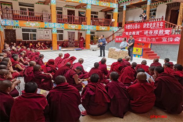 2021年6月10日,迪庆州德钦县计生协联合德钦县民宗局在德钦县东竹林寺寺庙管理局的全力配合下,结合当前党史学习教育“我为群众办实事”、全县宗教管理服务“四联四创”机制和建党100周年系列活动,到德钦县塔巴林寺开展“与僧尼心连心·讲党史庆百年 送爱到寺院”活动。