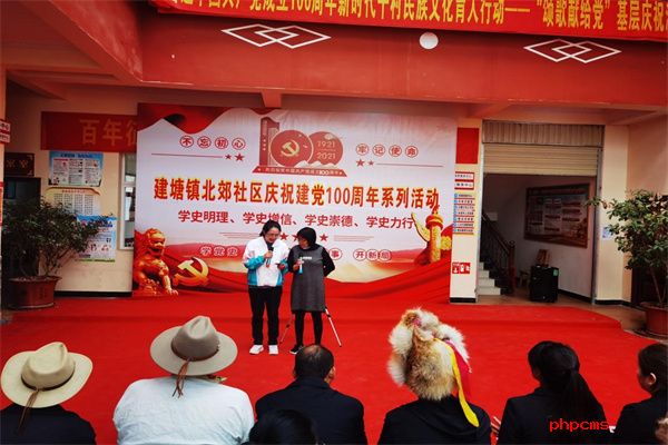 慰问活动结束后,北郊社区组织了“听党话 感党恩 跟党走”庆祝建党100周年文艺汇演,北郊社区各挂联单位、北郊党总支、两新支部等均表演了节目。此次文艺汇演在北郊党总支合唱的《我爱你中国》拉开帷幕,汇演形式多样、内容丰富,有《红船颂》诗歌朗诵,有《没有共产党就没有新中国》《北京的金山上》等具有代表性、耳熟能详的节目接连上演,展现了在建国前、建国后、改革开放和十八大以来的各个时期,中国共产党带领中华民族走向伟大复兴的光荣历程,为广大党员带来了一场精彩的文化盛宴。