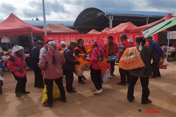 7月5日上午,红河州开远市碑格乡计生协组织计生宣传员、信息员、计生协志愿者利用赶集日,在乡新农贸市场开展第32个“世界人口日”宣传活动。