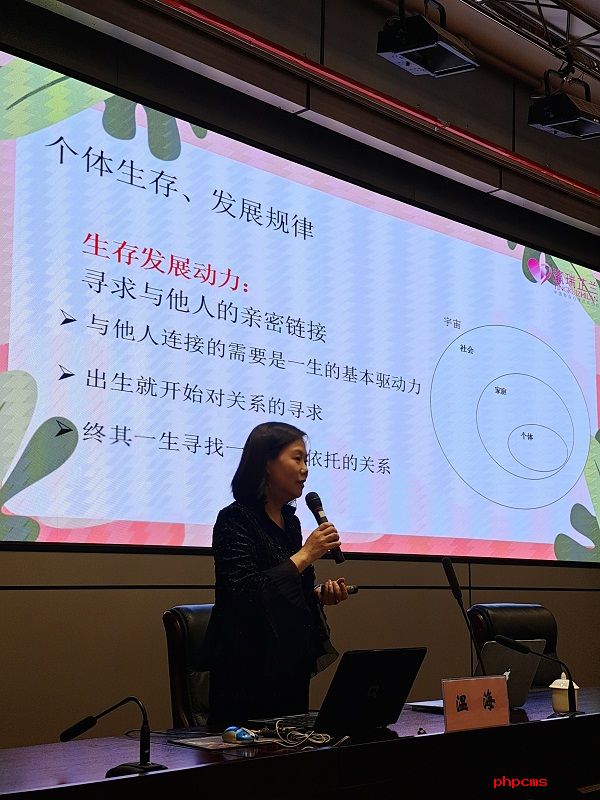 温海教授向大家讲述了人们生存和发展的动力就是寻求与他人的亲密链接,生存和发展的条件就是他人的关注、爱与被爱。温海教授还结合工作中的实际案例向大家分析了不同年龄阶段的孩子会出现的不同心理问题以及解决的办法。