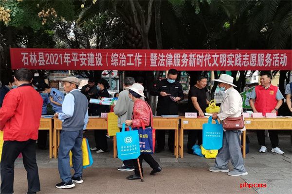 8月18日,昆明市石林县计生协在县城双龙广场,参加石林县2021年平安建设(综治工作)暨法律服务新时代文明实践志愿服务活动。