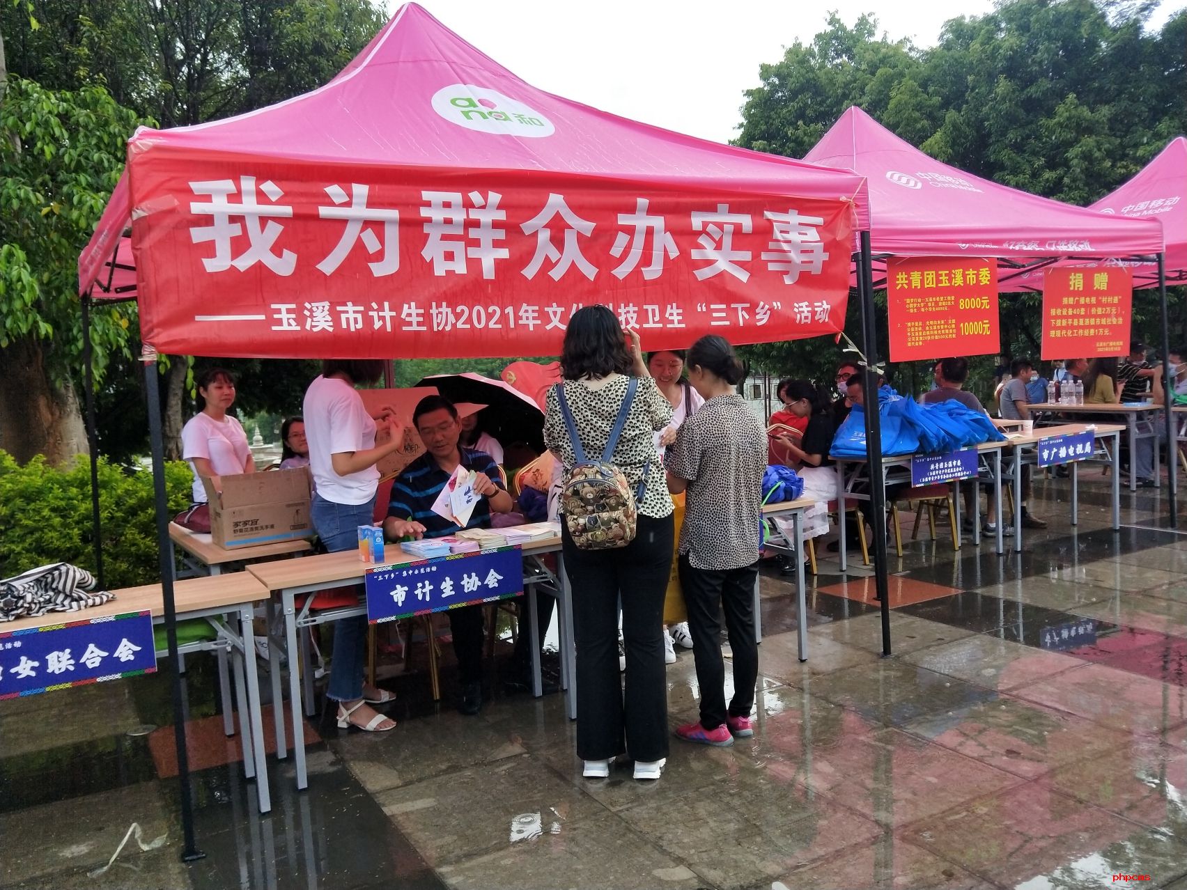 上午,玉溪市计生协协同市级30家单位和部门在戛洒镇凤凰广场开展文化科技卫生“三下乡”集中示范活动,现场设置咨询台,提供政策咨询,发放婚育新风、两癌防治、青春健康、爱国卫生专项行动应知应会知识等宣传读本及洗手液、一次性纸巾等日常生活用品。前来咨询的群众络绎不绝,工作人员耐心地提供政策咨询,发放宣传材料及洗手液、纸巾等日常生活用品,热情贴心地服务赢得了群众的称赞,提升了群众的获得感和幸福感,扩大了计生协的影响力。