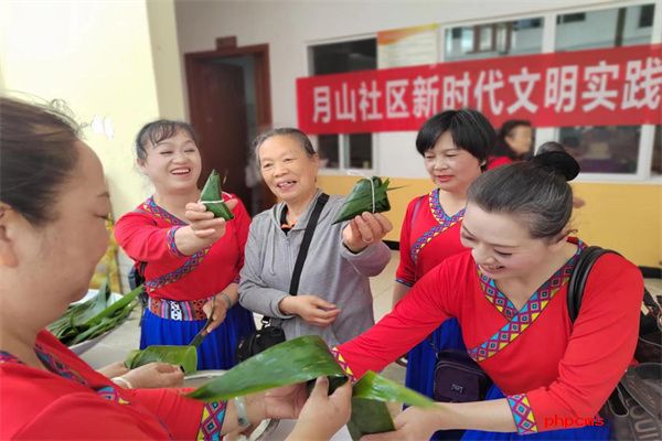 社区宣传服务志愿者为大家表演了丰富多彩的文艺节目,同时,组织计生特殊家庭人员开展包粽子活动。