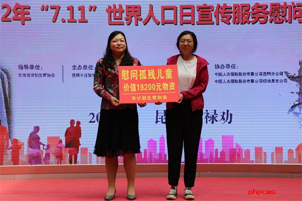 活动仪式由禄劝县卫生健康局党组书记、局长马仲顶主持,禄劝县张冰副县长致辞,昆明市计生协党组书记、常务副会长普跃英讲话,省计生协常务副会长李善荣宣布活动开始。活动现场为崇德小学82名留守儿童发放书包、图书等学习用品,慰问50户计生特殊家庭、计生困难家庭和流动人口家庭,每户发放价值200元的慰问品,向团街镇杨家村禄劝寄养社区资源中心孤残儿童捐赠19200元生活物资。