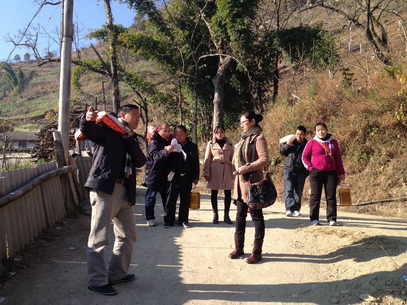 在卯照,全机关干部职工对联系户进行走访慰问,与群众拉家常,询问家庭基本情况,勉励联系户谋划好生产生活,进一步拓宽致富途径,同时送去干部职工自备的价值9500余元的大米、食用油等慰问品。