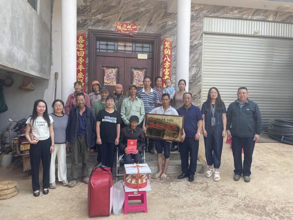 为大力弘扬中华民族尊老敬老的传统美德,进一步倡导敬老、爱老、助老的社区风尚,澄江市海口镇计生协落细落实摸排辖区百岁老人的工作,经过前期的筛查、审核,确认海口镇新村村委会浑水塘村的李正昌今年已满100岁。4月28日,海口镇计生协与澄江市卫健局慰问组,前往百岁老人家中开展慰问活动,共同庆祝百岁老人生日。