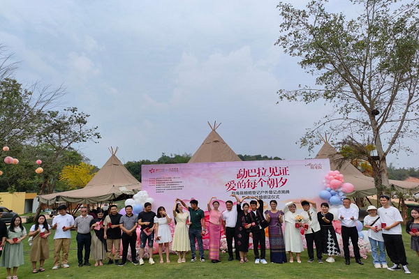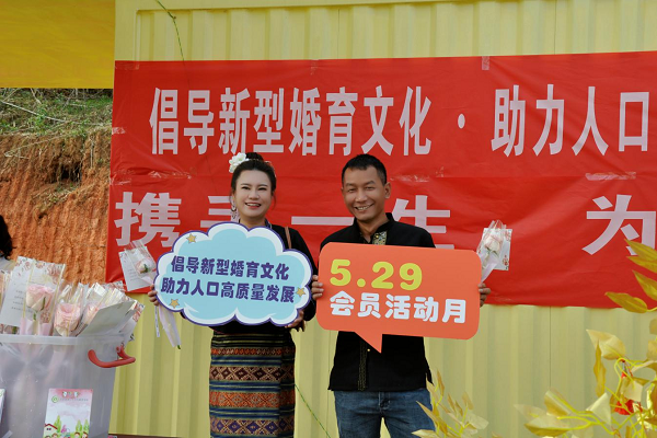 5月20日,因日期谐音蕴含着深情厚意,让这个平凡的一天成为准新人眼中寓意美好的日子。藉此之际,西双版纳州勐海县计生协联合文明办、县民政等部门以“5·20”户外婚姻登记集体颁证活动为纽带,开展“倡导新型婚育文化 助力人口高质量发展”为主题的宣传服务活动,旨在积极倡扬新时代婚育文化,广泛宣传生育支持政策,让生育政策与“浪漫”同行。