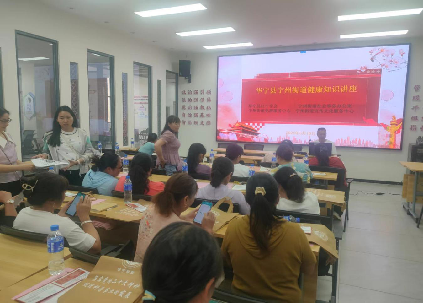 在中国计生协成立44周年纪念日和第26个会员活动日来临之际,为了更好地向辖区居民群众宣传人口、健康知识,进一步营造宣传氛围,5月16日下午,宁州街道计生协联合社会事务办公室、党群服务中心、宣传文化服务中心以“倡新型婚育文化 助力新时期人口高质量发展——庆祝新中国成立75周年”主题开展宣传服务活动,活动邀请华宁县红十字会、宁州卫生院的四位老师为大家授课,宁州街道27个村(社区)计生协工作人员、乡村医生、街道工作人员、群众共计50余人参加。