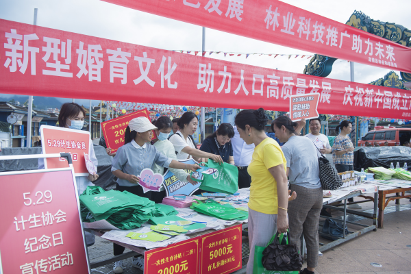 今年的“5.29”是第26个计生协会员活动日,亦是计生协成立44周年纪念日。为大力弘扬新型婚育文化,共同营造生育友好社会氛围,助力新时期人口高质量发展,5月28日,西双版纳州勐腊县计生协联合中国人寿保险公司勐腊支公司、勐腊镇四个社区、县中傣医医院、县妇幼保健院、县社区卫生服务中心共同开展以“倡导新型婚育文化 助力人口高质量发展—庆祝新中国成立75周年”为主题的群众性宣传服务活动。