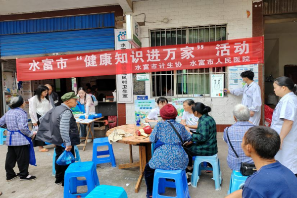 联合水富市人民医院和市妇幼保健院,组建医疗团队主动深入村(社区),积极为农村群众进行免费义诊和疾病筛查,宣讲健康常识和生育支持政策,将健康知识和医疗服务送到基层群众身边,让群众在家门口就可享受到优质的诊疗服务。活动期间,累计开展“健康知识进万家”活动5场次,发放宣传资料500余份,为群众提供咨询、诊疗服务230余人次,进一步促进群众健康素养的提升。