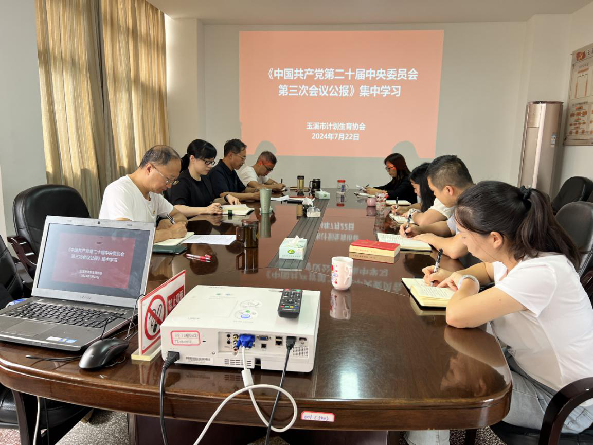 7月22日,玉溪市计生协组织集中学习《中国共产党第二十届中央委员会第三次全体会议公报》。会议由常务副会长张希也主持,干部职工参加,党组成员、副会长、支部书记矣成江原文领学公报内容。