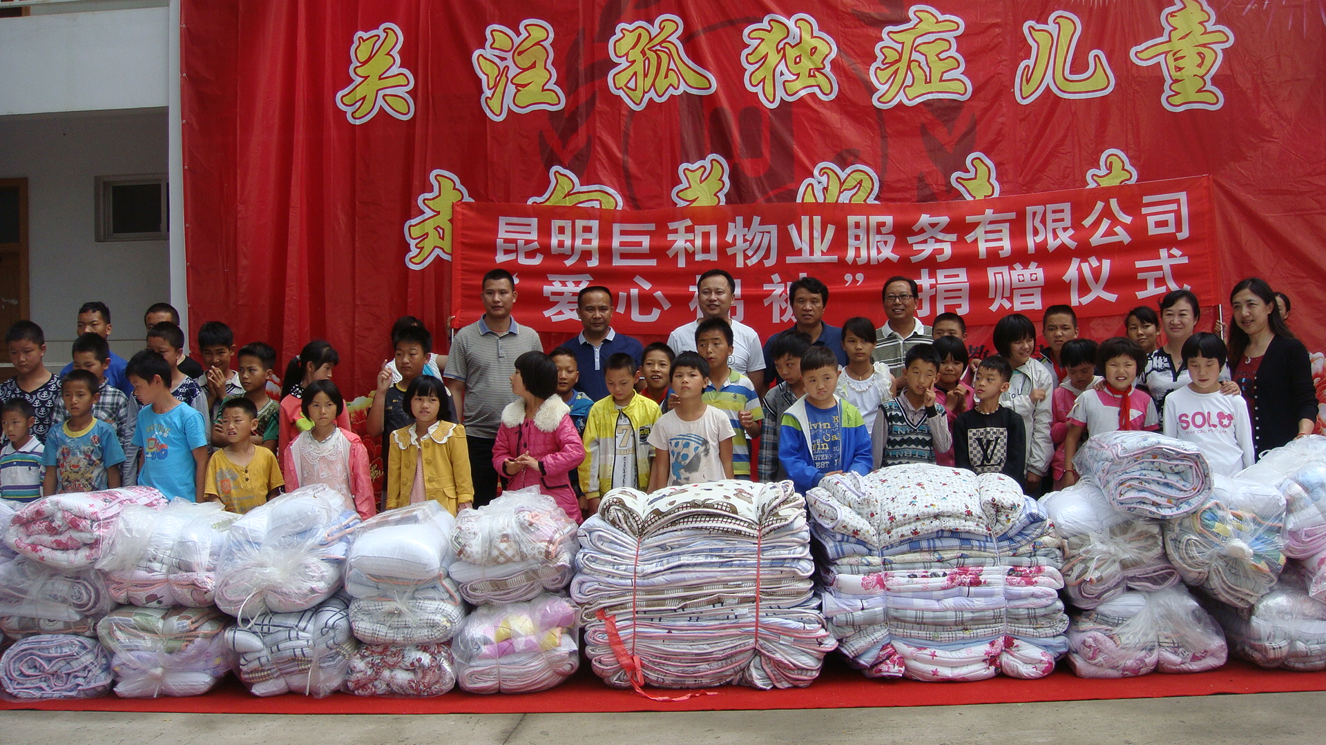 在“六一”儿童节来临之际,5月22日上午,市人口计生局、市计生协会、市红十字会领导和昆明巨和物业有限公司负责人何少勇一行20余人弥勒市特殊教育学校开展爱心捐赠活动, 全校83名聋哑、知障学生提前收到了昆明巨和物业有限公司送来的“六一”儿童节礼物。