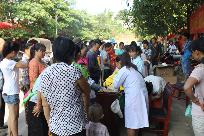 9月16日,金平县人口计生局、卫生局、计生协会、残疾人联合会深入金水河镇联合镇计生办、卫生院、残联利用群众赶集日开展出生缺陷干预宣传周服务活动。宣传活动内容主要有:怀孕生育有关的心理、生理知识,婚前医学检查服务的内容及目的,实行计划妊娠的重要性和基本方法,孕前准备和孕前优生健康检查的内容及意义,孕期保健、产前筛查和产前诊断、新生儿疾病筛查、0-6岁儿童残疾筛查和康复服务的重要意义和内容,预防出生缺陷等不良妊娠结局的主要措施等。活动共发放国家免费孕前优生健康检查知识读本500份,优生优育知识读本300份,避孕药具3000余份,出生缺陷预防知识宣传和关爱残疾人与残疾人保健知识宣传环保袋400支,宣传纸杯3000支,免费义诊100余人次,提供各种咨询活动200余人次。