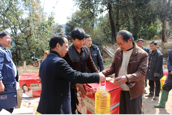 此次活动,共慰问贫困户和计划生育家庭困难户共14户,发放食用油、米和棉被等物资,折合资金3000余元。