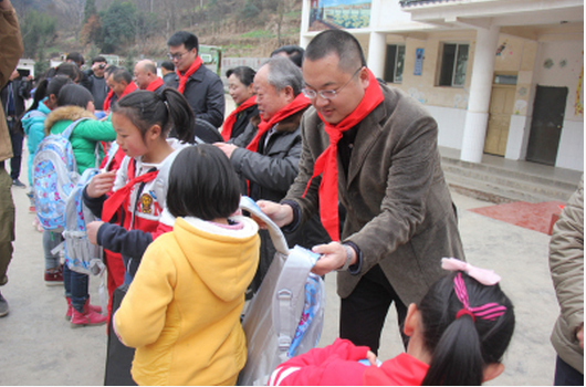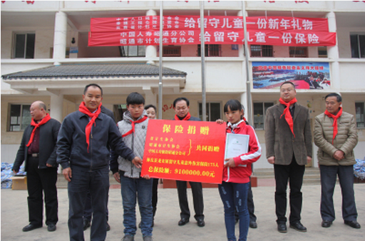 云南省计生协会副会长易会安、中国人寿云南省分公司团体业务部总经理李舻、市计生协会会长吕维戬、中国人寿昭通分公司副总经理董庭华等领导和来宾,分别代表省市计生协会和中国人寿保险公司出席捐赠仪式,并向留守儿童们发放了人身意外伤害保险和爱心包裹;勉励小学生们要胸怀理想、珍惜学习机会,心怀感恩之心、用优异的成绩和实际行动来报答企业和社会所有爱心人士的关心支持与帮助。